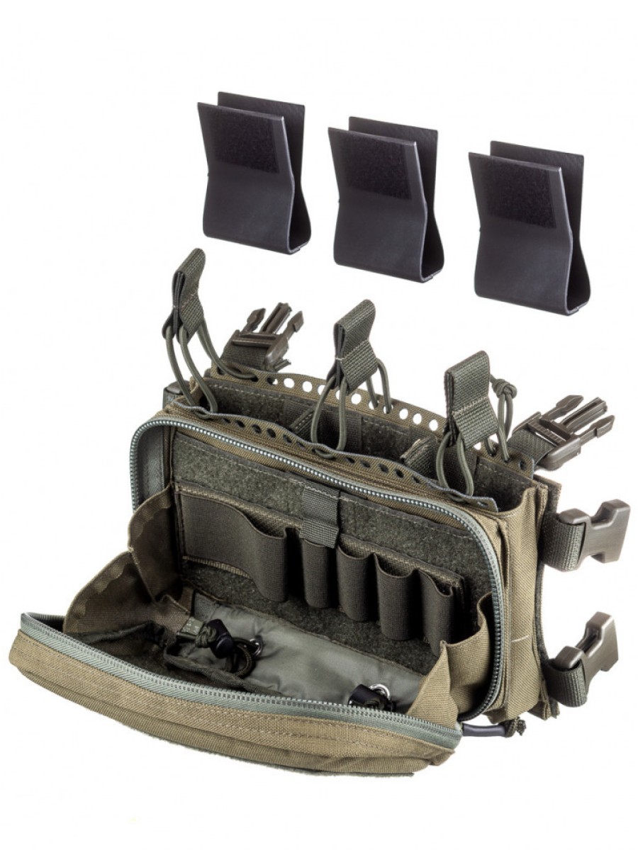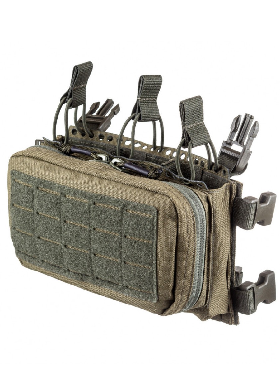 Предназначен для использования как с бронежилетом, так и в качестве самостоятельного элемента снаряжения. Изделие выполнено в виде основного переднего отделения с отстёгивающимися плечевыми лямками, поясной стропы и боковых съёмных панелей.