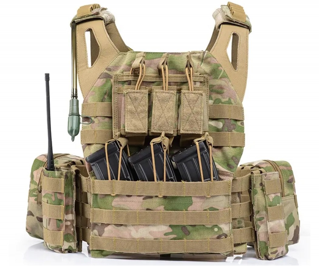 Тактический быстросъемный бронежилет с подсумками Yakeda VT-8141 обеспечен системой MOLLE по всей поверхности жилета, подсумками под автоматные магазины. БРОНЕПЛИТЫ В КОМПЛЕКТ НЕ ВХОДЯТ. Боковины пояса жилета со скрытыми карманами под дополнительную защиту.