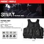 Тактический жилет от фирмы Yakeda облегченного типа. Объем жилета регулируемый, также имеется возможность отрегулировать длину съемного пояса. Спереди предусмотрены отделения для размещения различного снаряжения, в т.ч. автоматных магазинов. На спинной части жилет оборудован четыремя горизонтальными стропами с ячейками стандарта MOLLE для закрепления снаряжения. Широкие плечевые лямки позволяют более равномерно распределить нагрузку. Подкладка жилета выполнена из сетчатой ткани, обеспечивающей хорошую вентиляцию. Жилет выполнен из полиэстера 600D, цвет жилета - черный.