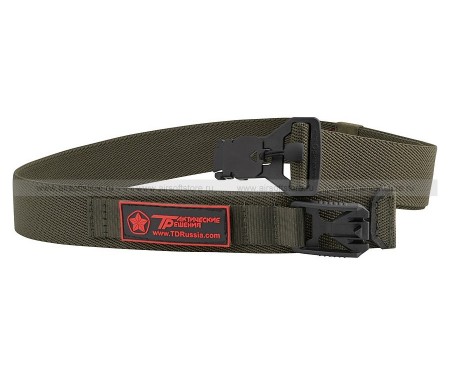 Инновационный брючный стрелковый ремень Долг «Флекс» цвета хаки с магнитной пряжкой быстрого размыкания. Пряжка фиксируется на стальную пластину с магнитную направляющей, что обеспечивает легкое закрывание и открывание. Срок службы неодимового магнита – более 30 лет. Материал пряжки – морозостойкий полимер. Нагрузка на разрыв – 70 кг.