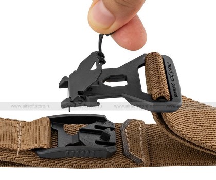 Отлично работает на тактических штанах с растягиваемым поясом. Продевается в стандартные петли мужских и женских джинсов. Поперечная жёсткость стропы позволяет навешивать различные аксессуары так же, как на кожаный или тактический ремень.
