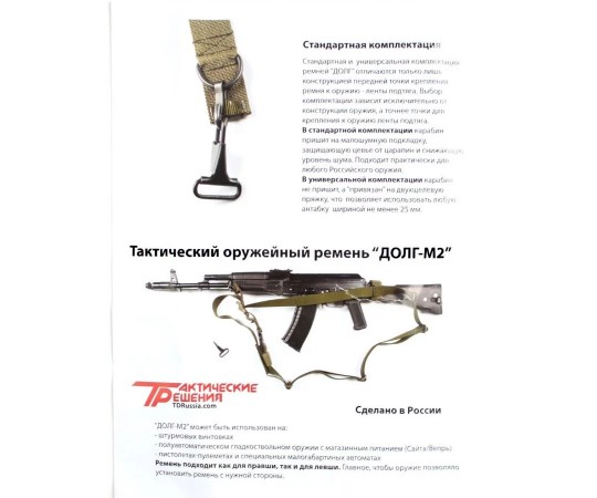 Тактический оружейный ремень «Долг-М2» - запатентованное изобретение Владимира Харлампова. Ремень представляет собой сочетание преимуществ одно-, двух- и трехточечной оружейных ременных систем, исключая при этом их недостатки.