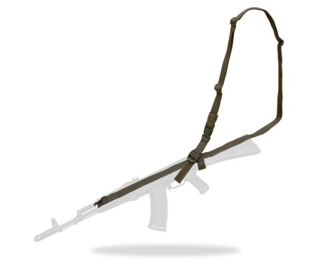 В боевом положении ремень полностью высвобождает оружие, что позволяет перекладку на "слабое" плечо, стрельбу вверх или из положения лежа.