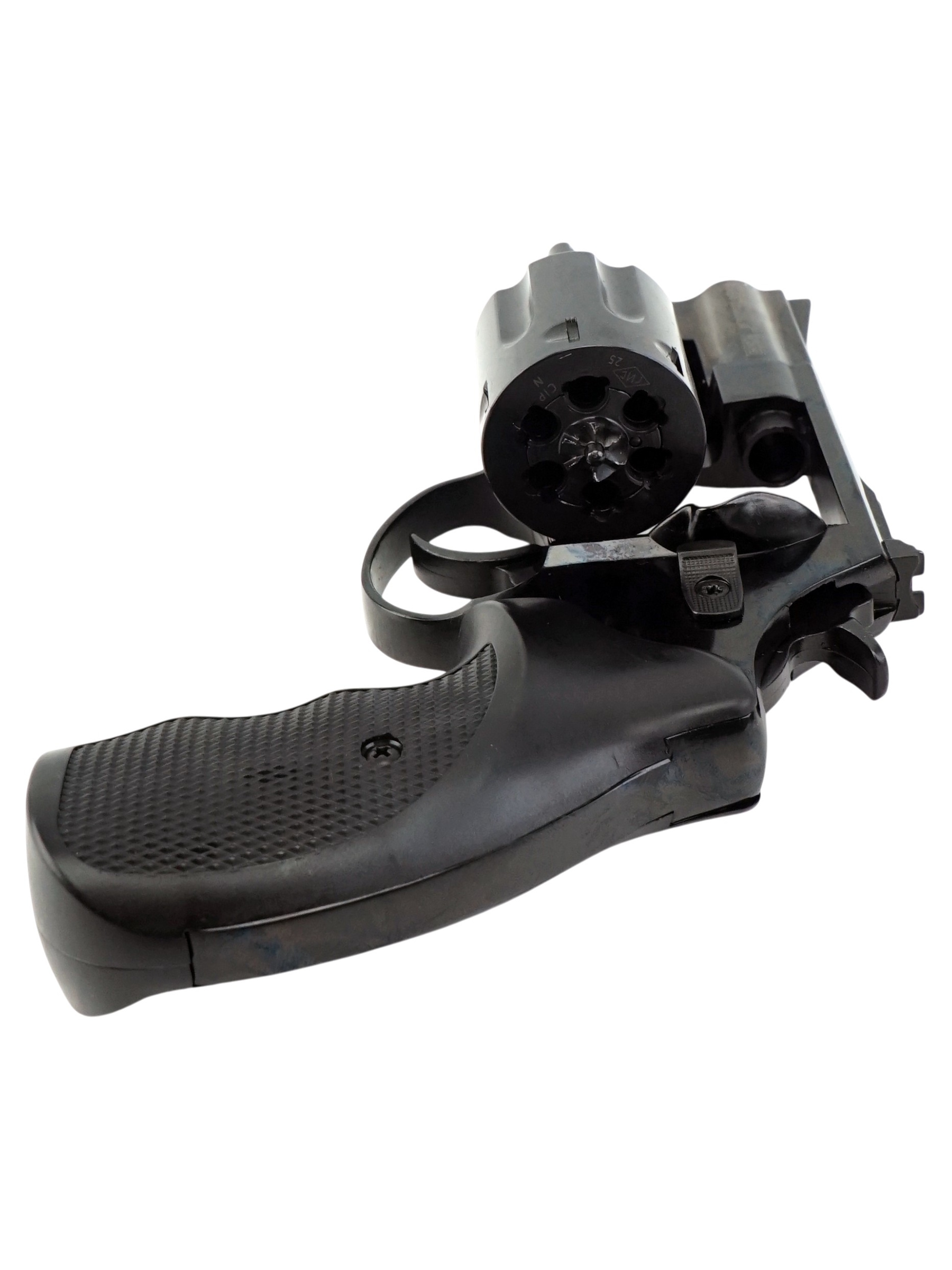 Конструкция револьвера исключает применение патронов, используемых в стандартном оружии, а для исключения возможности стрельбы стальными шарами в стволе установлен стальной штифт.