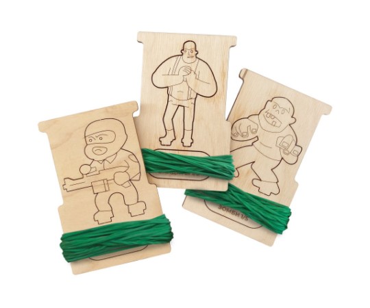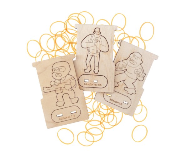 Универсальные резинки (около 25 штук), размещенные на фанерной обойме, подходящие для всех типов резинкострелов Arma.toys.