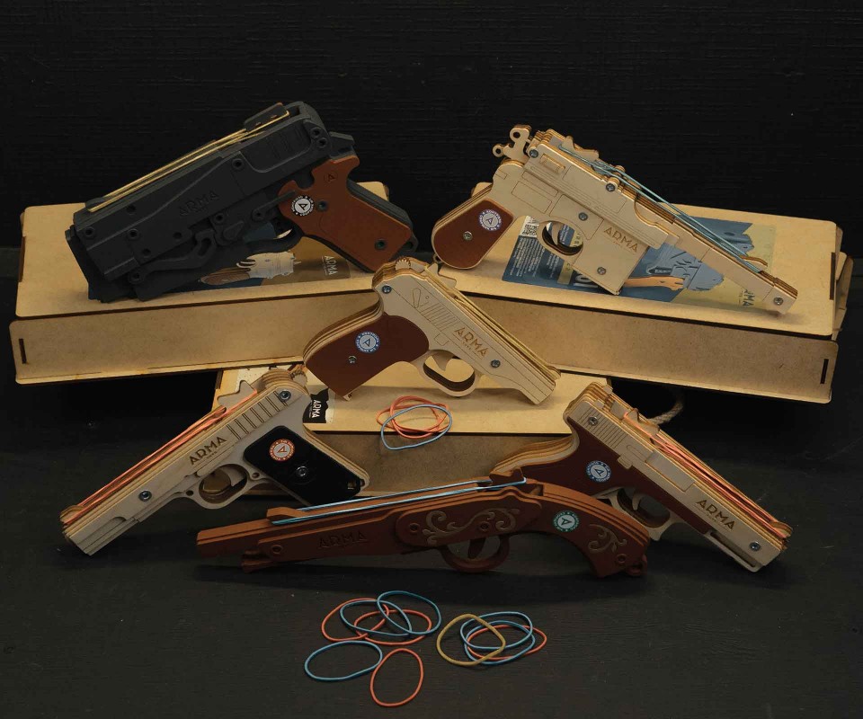 С точки зрения безопасности, резинкострел уступает лишь водному пистолету. Дальнобойность — около 10 метров, то есть, из него можно стрелять в квартире и ничего не повредить.