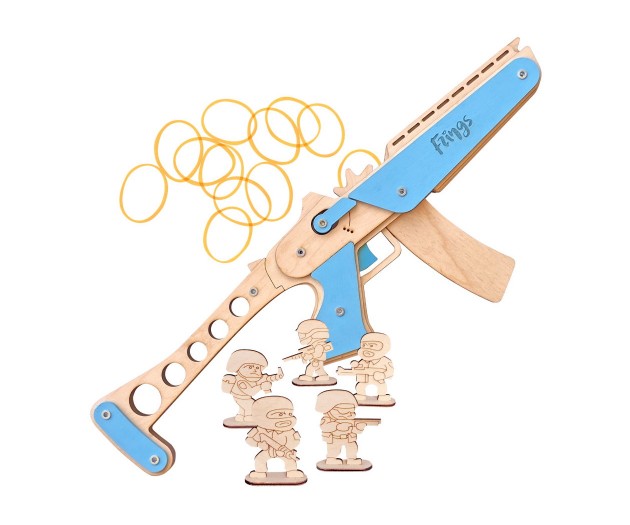 Заряды — эластичные резинки. Их размер специально подобран так, чтобы стрелять получалось максимально далеко и кучно.