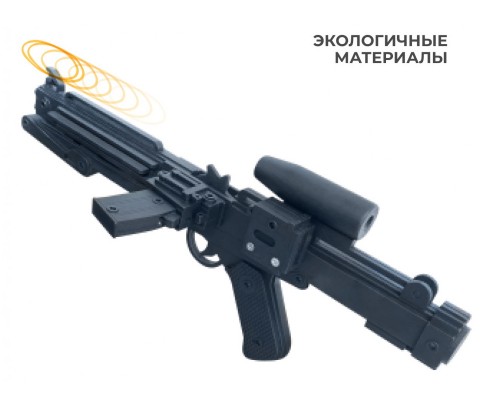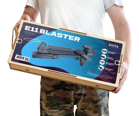 Перед вами копия лазерной винтовки Е-11 «Звездных войн», того самого оружия имперского штурмовика. Она деревянная, но понять это можно только взяв ее в руки. Благодаря глубокой черной краске винтовка кажется металлической или, хотя бы, пластиковой.