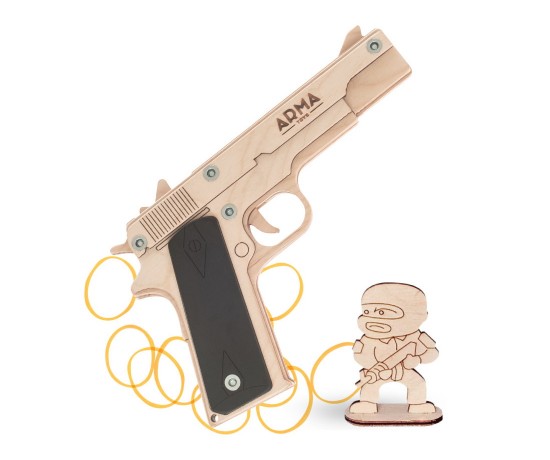 Комплектация (?): | макет-резинкострел пистолета, комплект зарядов, мишень, инструкция |