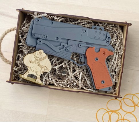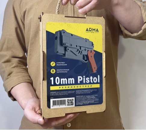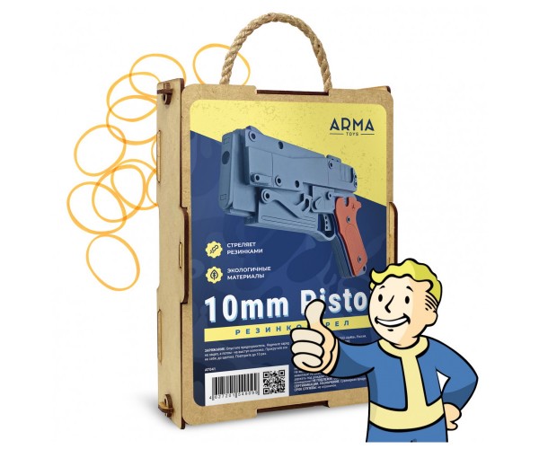 Перед вами копия пистолета калибра 10 мм из вселенной Fallout в формате игрушки-резинкострела. Подвижный затвор (функция «блоубэк») — такого мы прежде еще не делали!