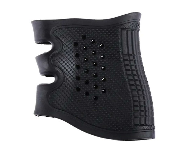 Резиновая накладка на рукоять пистолета предназначена для обеспечения надежности удержания оружия во время его эксплуатации. Выемки под пальцы, перфорация на боковых и торцевой поверхности накладки обеспечивают дополнительное сцепление с поверхностью ладоней. Накладка совместима с большинством моделей пистолетов.