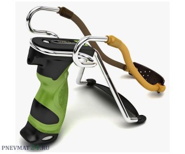 Модель имеет упор на предплечье. Ее рукоять удобна для захвата. Конструкция рогатки предусматривает наличие стабилизаторов, которые помогут получать точные попадания, почти без “доброса” снаряда опорной рукой.