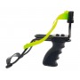 Centershot Voodoo - спортивная рогатка с эргономичной пистолетной рукояткой с возможностью регулировки упора и прицельного окна. Упор позволяет снять нагрузку с лучезапястного сустава, сместив ее на предплечье. Это упрощает прицеливание, увеличивая точность и дальность стрельбы.