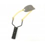Для более надежного удержания изделия в руках ручка рогатки сделана с рельефной поверхностью, вследствие чего оружие прочно удерживается в руках вне зависимости от условий стрельбы и положения тела стреляющего. Рога рогатки – стальные, изогнутые по перпендикуляру в направлении резинки для увеличения ее срока службы.