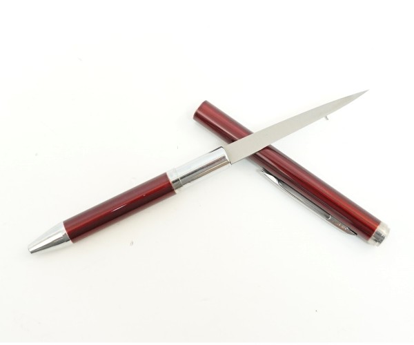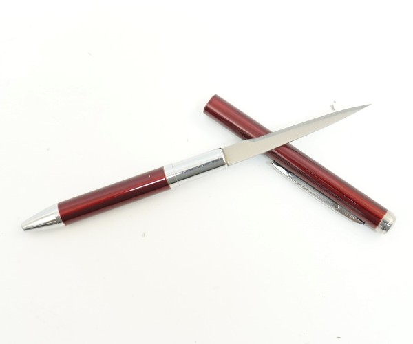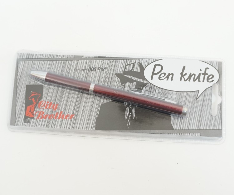 City Brother 003 - Red в блистере - это шикарная ручка-нож, которая имеет ярко красную окраску. Производит данный товар известная компания - City Brother. Длина данной модели составляет 130 мм. Главным преимуществом ручки-ножа является хорошая маскировка клинка, внешне догадаться, что внутри имеется клинок просто невозможно. Ручка-нож удобно держится в руке, с ее помощью можно не только уделять внимание рукописным текстам, но и в нужный момент перерезать веревку или нитки, а может порезать картон или бумагу. Такую ручку удобно держать в руке, длина рукояти занимает 75 мм. Клинок изготавливают из стали-нержавейки.