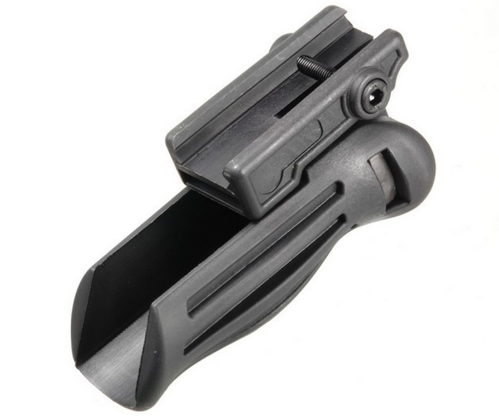 Подствольная ручка FGRP-004 предназначена для установки на оружие с планкой Weaver. Она имеет 4 фиксированных положения: сложенное, под углом 45°, 90° и 135°. Переключение между положениями осуществляется с помощью подпружиненной металлической кнопки.