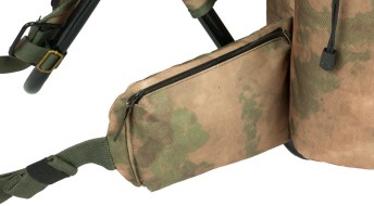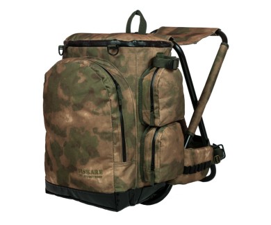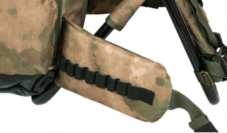 Непромокаемое дно, влагонепроницаемые молнии, мягкий фиксирующий пояс, термоотделение для термоса, мягкое сиденье, карман для мобильного телефона, патронтаж, фиксир. застежка на груди. Цвет: оливковый хаки.