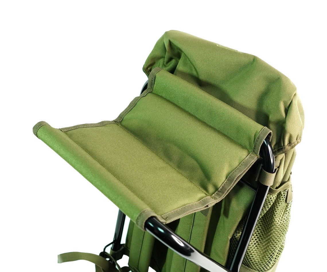 Рюкзак имеет прочную (до 120 кг.) и главное легкую конструкцию стула, что обеспечивает безопасность и комфорт при использовании. При необходимости стул может быть отстегнут от рюкзака и использоваться отдельно. Каркас стула О-образный, что очень удобно при использовании на мягком грунте (не проваливается).