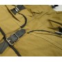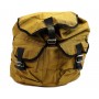 Этот рюкзак имеет 2 кармашка с передней части, закрываются они на ремешки, кстати, из кожи. Горловина рюкзака затягивается шнурком, а крышка так же закрывается 2 кожаными ремешками. На задней стороне рюкзака имеется кольцо металлическое, для подвешивания рюкзака и 2 лямки из прочных строп.