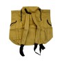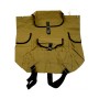 Этот рюкзак имеет 2 кармашка с передней части, закрываются они на ремешки, кстати, из кожи. Горловина рюкзака затягивается шнурком, а крышка так же закрывается 2 кожаными ремешками. На задней стороне рюкзака имеется кольцо металлическое, для подвешивания рюкзака и 2 лямки из прочных строп.