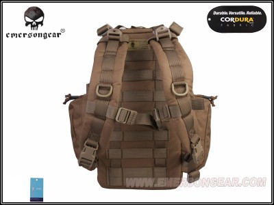Также рюкзак оснащен двумя боковыми утилитарными подсумками, двумя карманами во внешней панели рюкзака. Может носиться на спине посредством лямок, которые можно снять, а так же с помощью крепления MOLLE. Съемные плечевые лямки в комплекте.