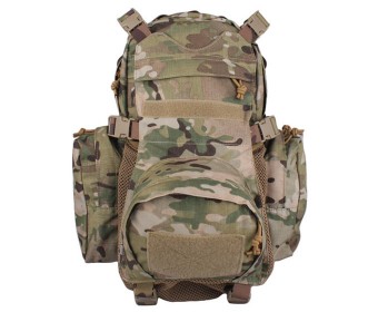 Также рюкзак оснащен двумя боковыми утилитарными подсумками, двумя карманами во внешней панели рюкзака. Может носиться на спине посредством лямок, которые можно снять, а так же с помощью крепления MOLLE. Съемные плечевые лямки в комплекте.