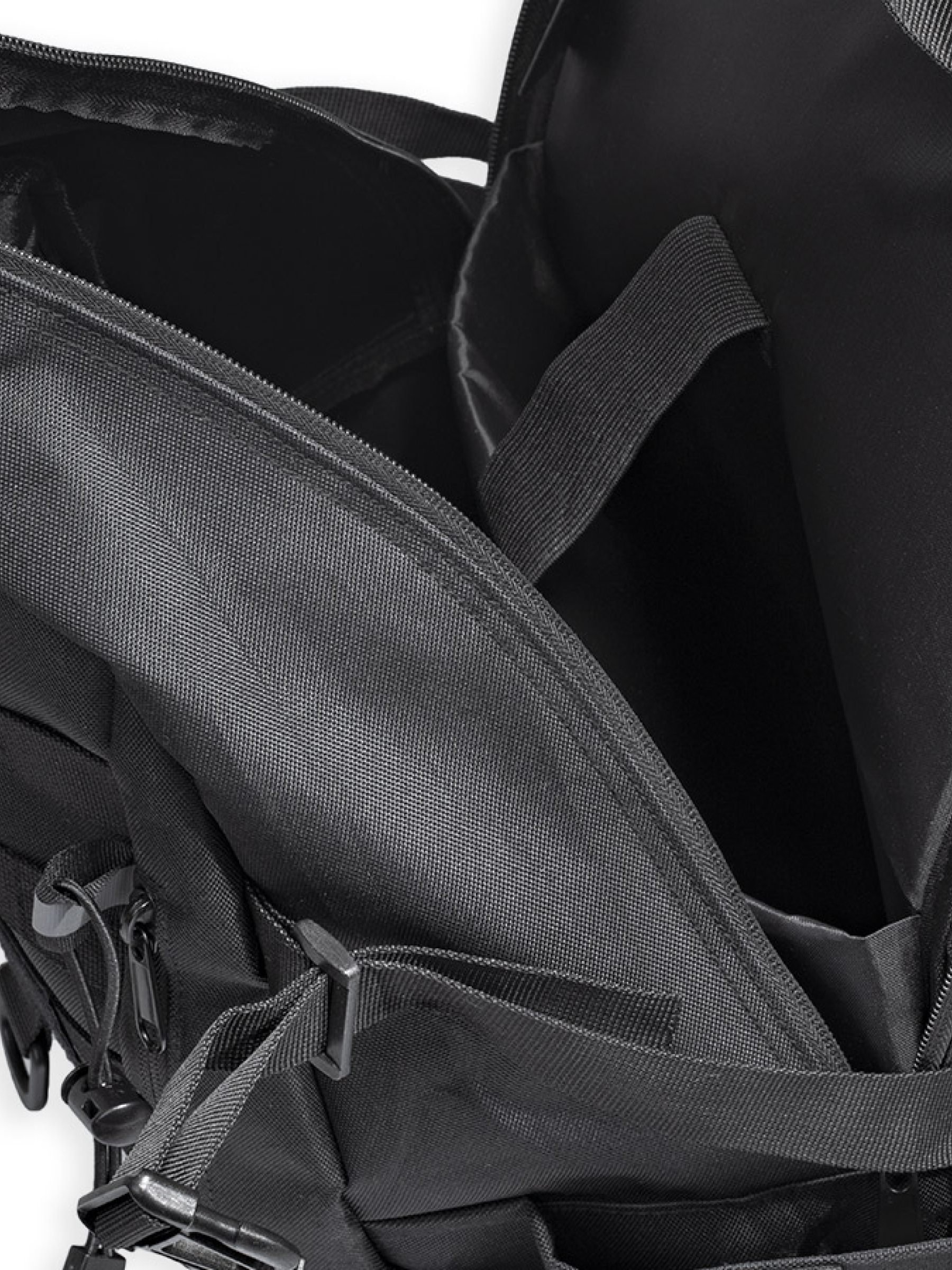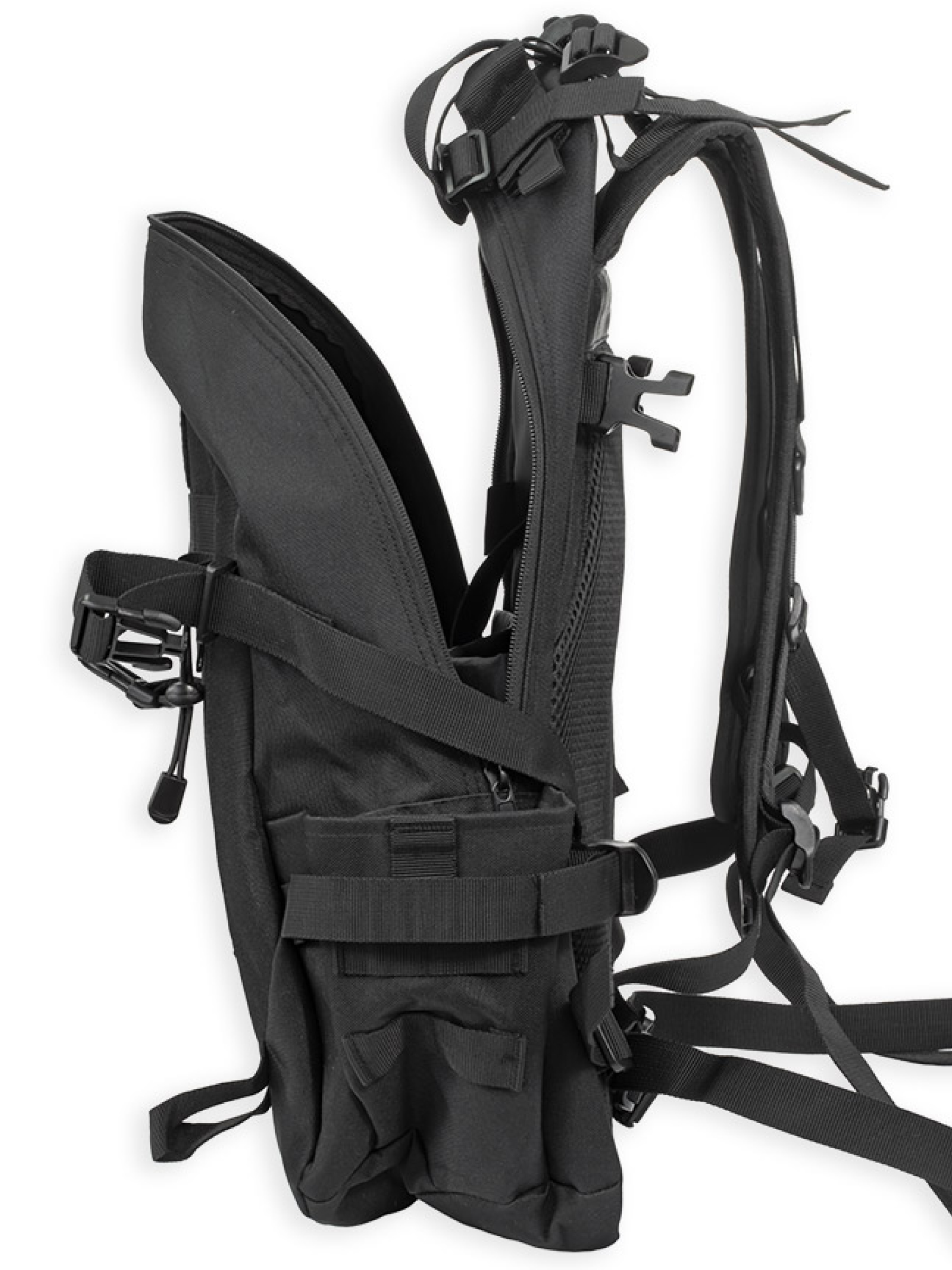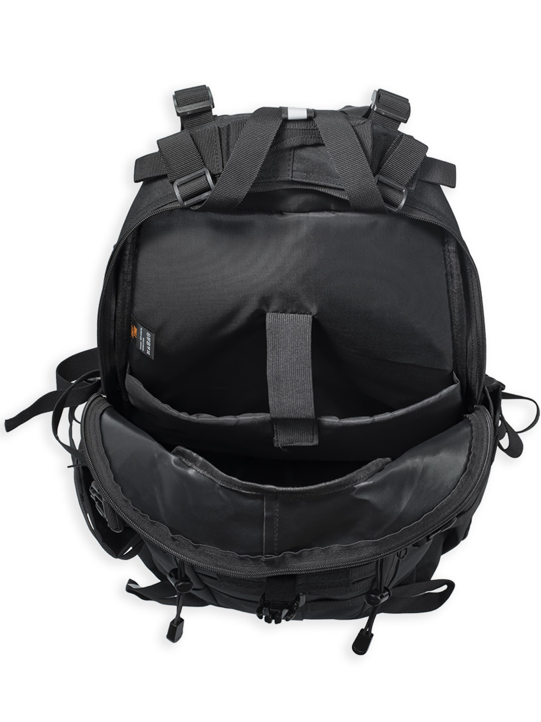 Боковые карманы, в которые можно положить бутылку с водой или темокружку, утягиваются дополнительными стропами. В большом кармане основного отделения можно разместить ноутбук, планшет или гидратор. Для защиты техники от повреждения карман имеет плотную амортизирующую прокладку. В верхней части рюкзака, по бокам от ручки сделаны отверстия, закрывающиеся на Velcro липучки для вывода наушников или трубки гидратора.
