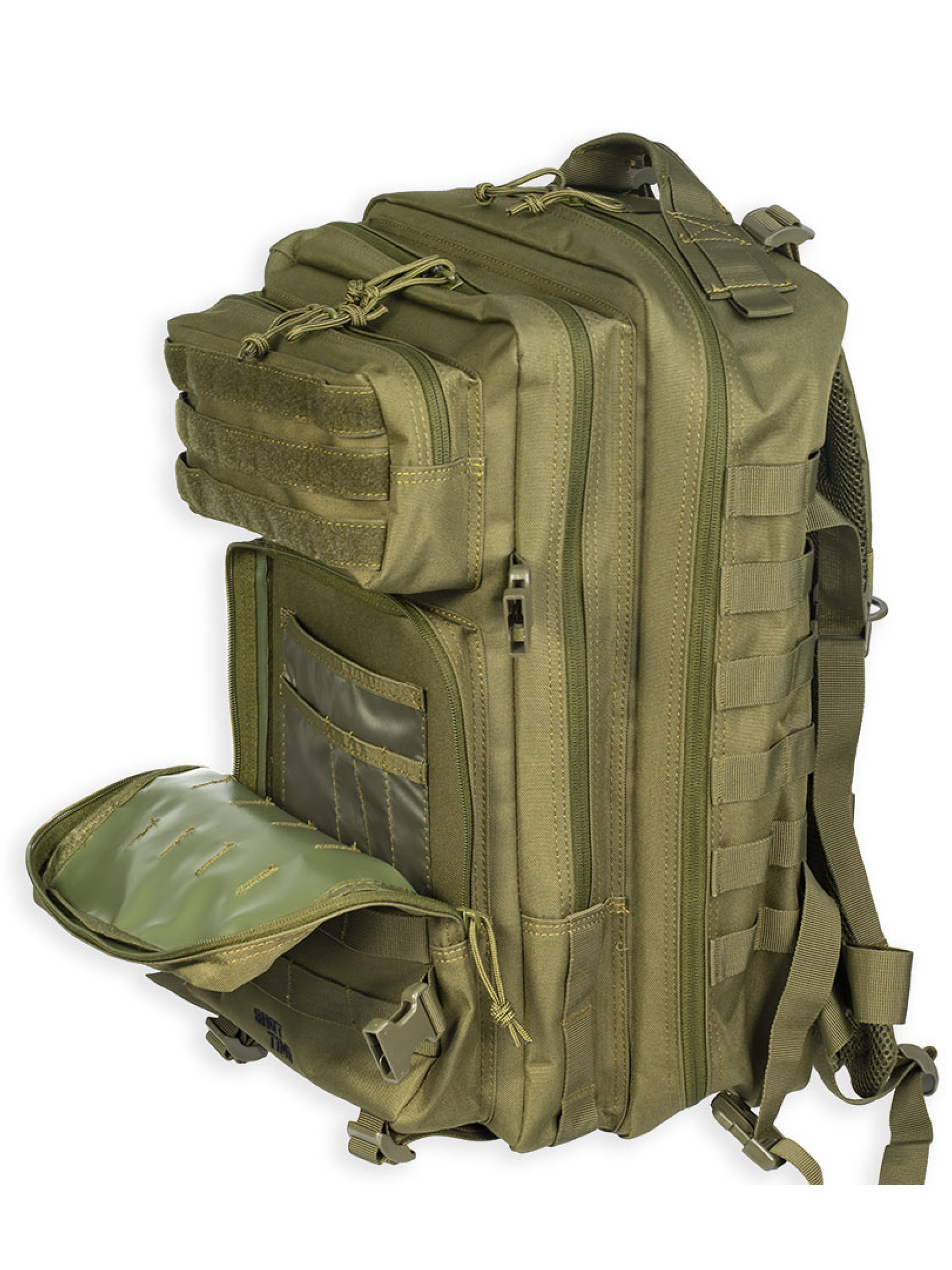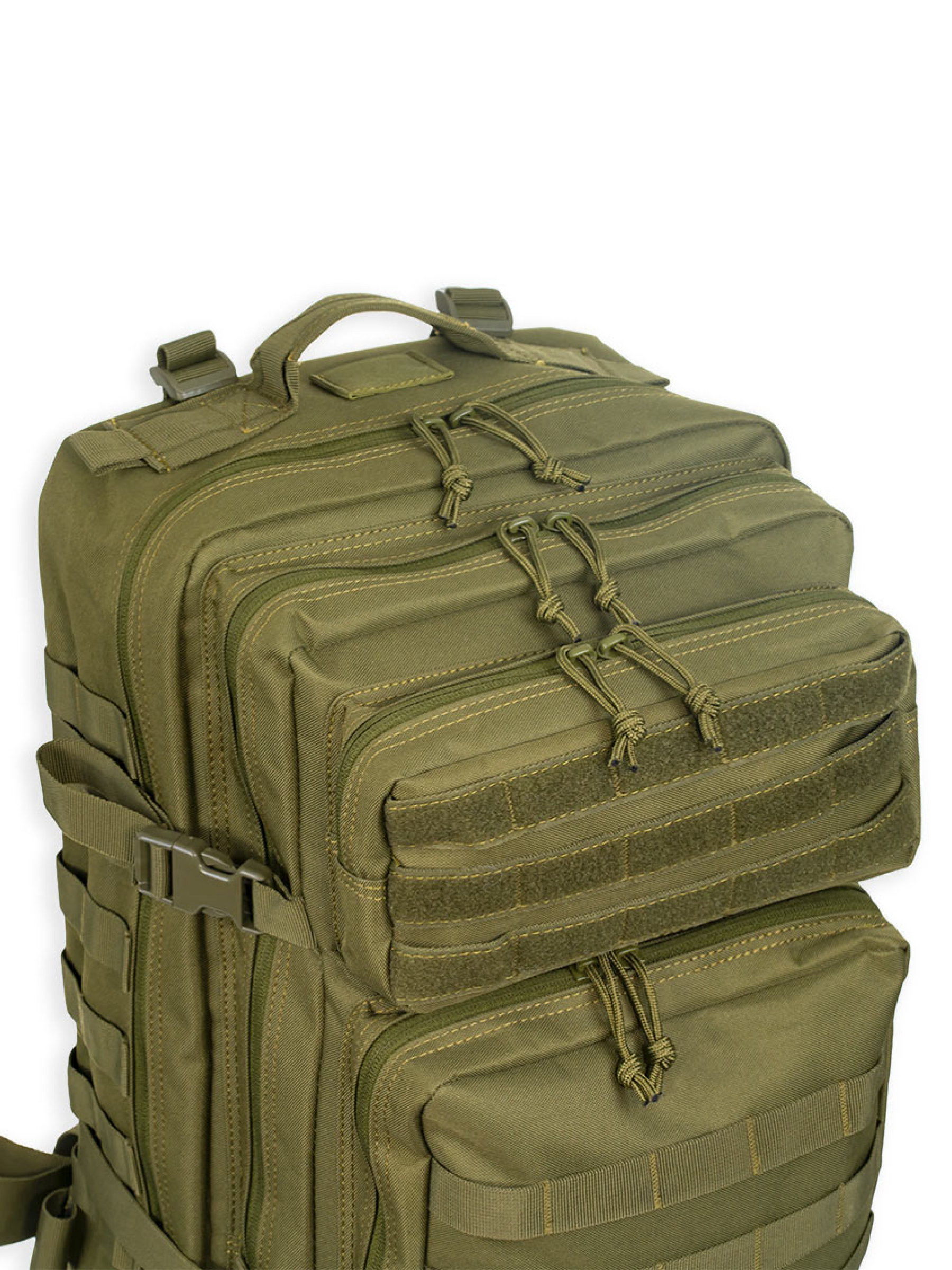 Рюкзак имеет качественную фурнитуру. Молнии изготовлены из нержавеющей стали и имеют нейлоновые пуллеры. На всех отделениях и наружных карманах установлены двойные бегунки. Прочные ABS-фастексы обеспечивают удобство использования. Многочисленные отделения и карманы позволяют эффективно организовать хранение вещей, а система MOLLE на передней и боковых сторонах обеспечивает возможность крепления дополнительных подсумков и снаряжения.