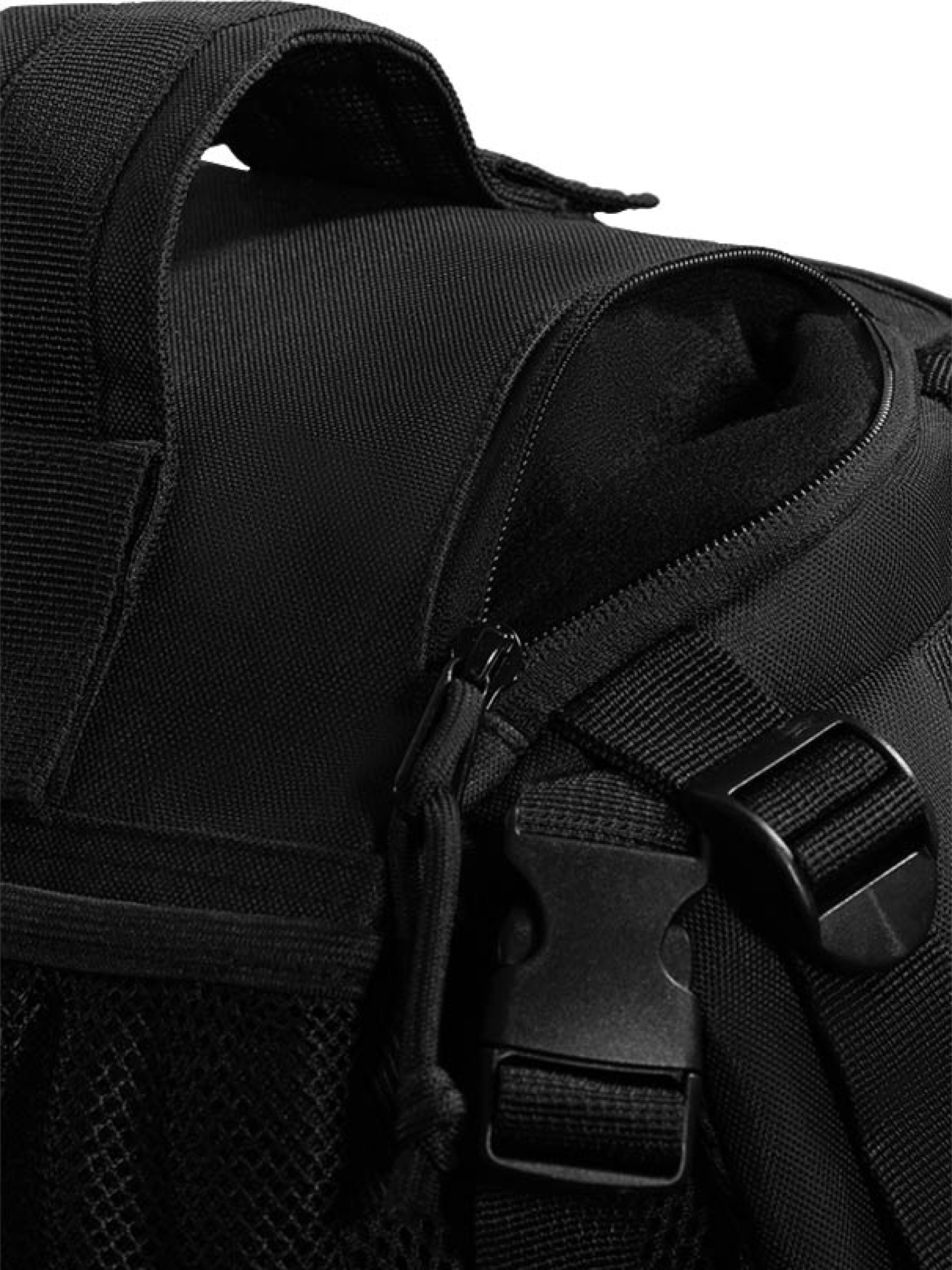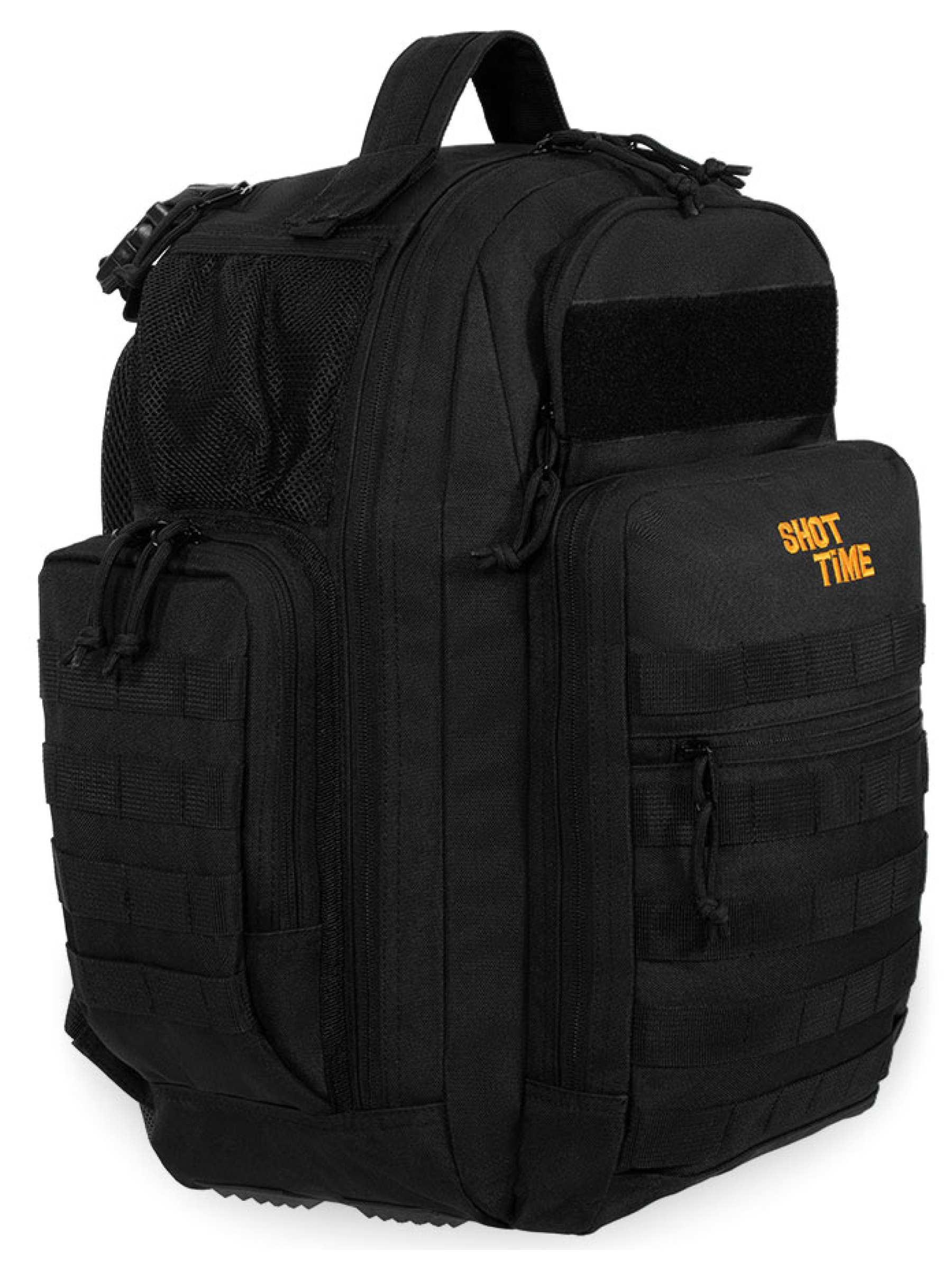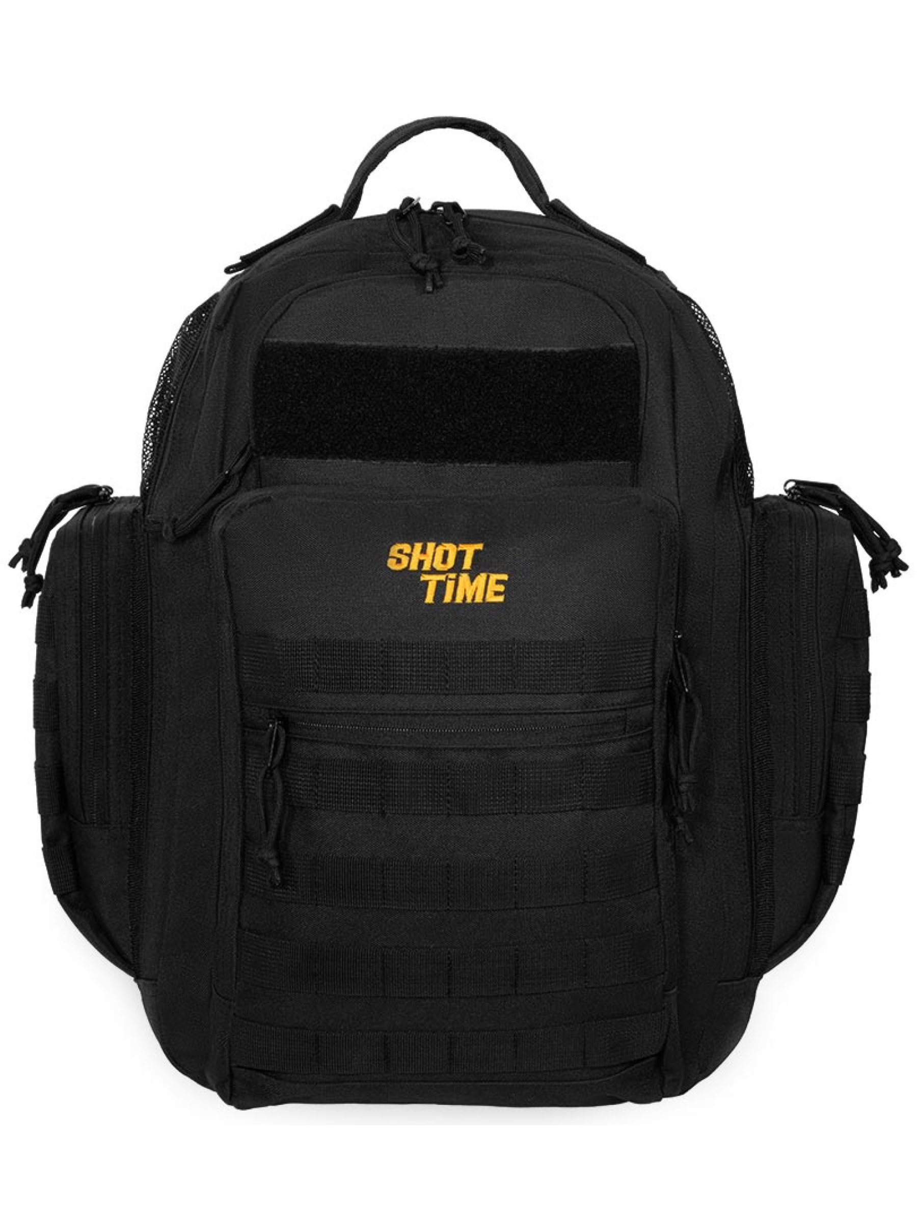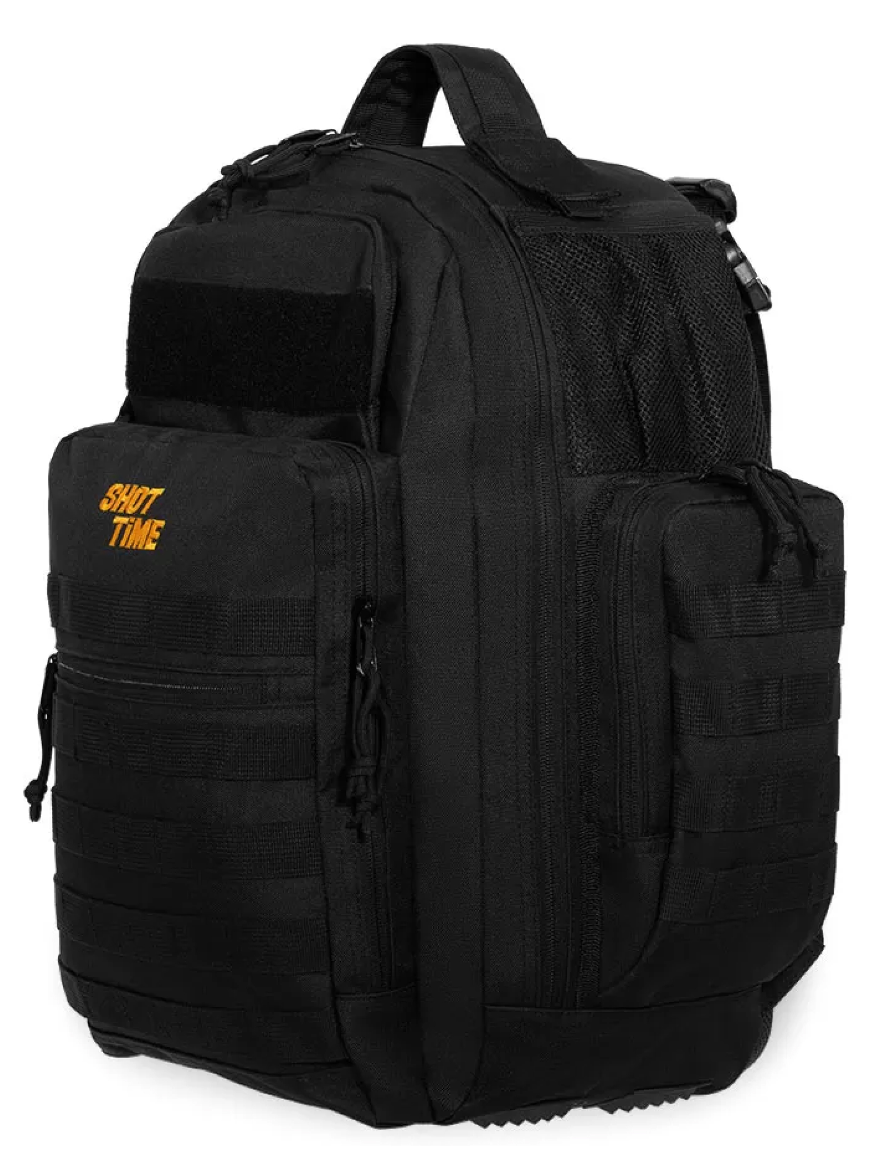 Рюкзак ShotTime Tactical объёмом 36 литров — это надёжное решение для активного отдыха и ежедневного использования. Основной материал — полиэстер 600D с ПВХ покрытием, подкладка выполнена из нейлона 210D, что придаёт изделию водостойкость. Система MOLLE на передней и боковых сторонах позволяет закрепить дополнительное снаряжение, что делает рюкзак универсальным и удобным. Молнии выполнены из нержавеющей стали и нейлона, бренда YKK, с двойными бегунками на основном, фронтальном отделении и боковых карманах. Прочные ABS-фастексы, пряжки и зажимы также чёрного цвета, как и корпус рюкзака.