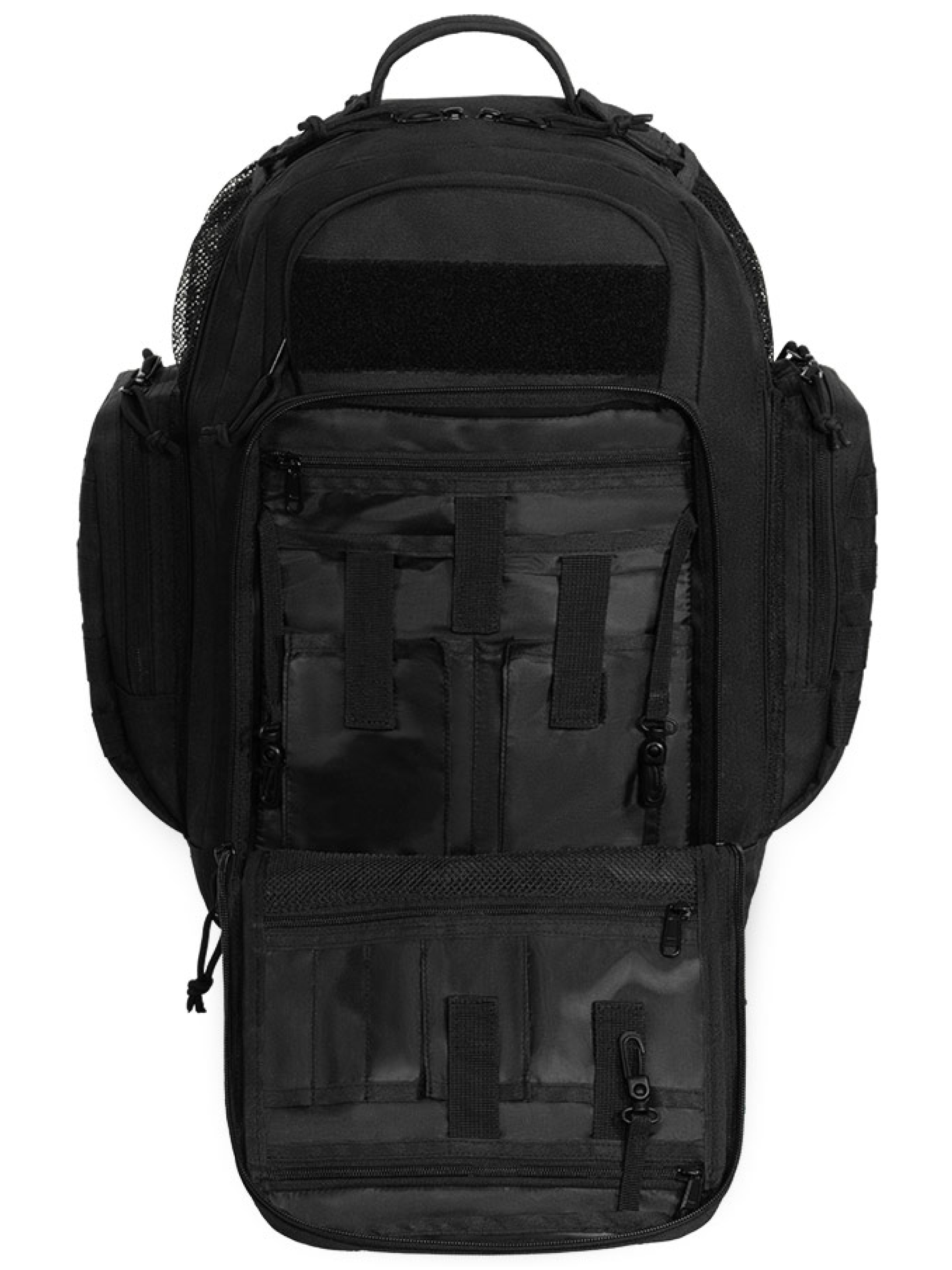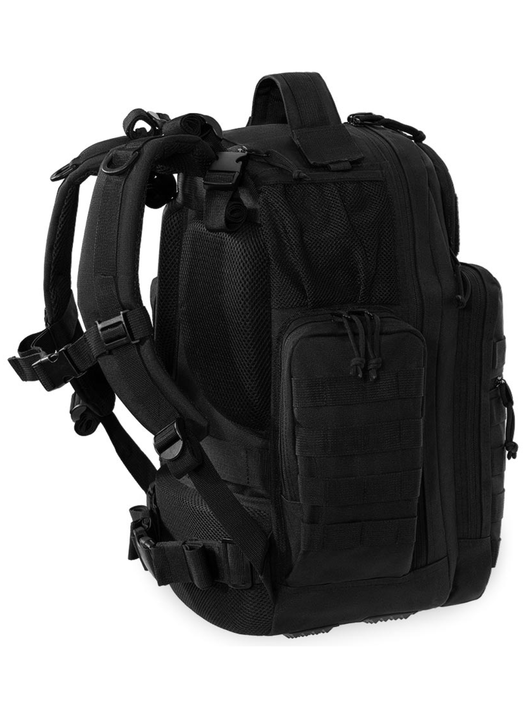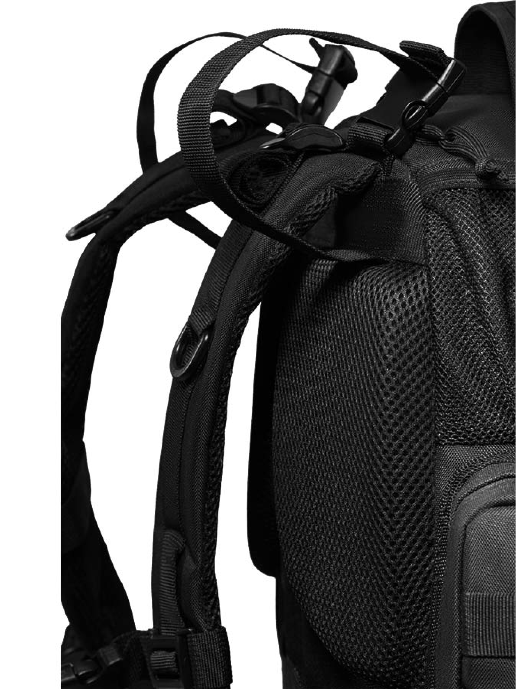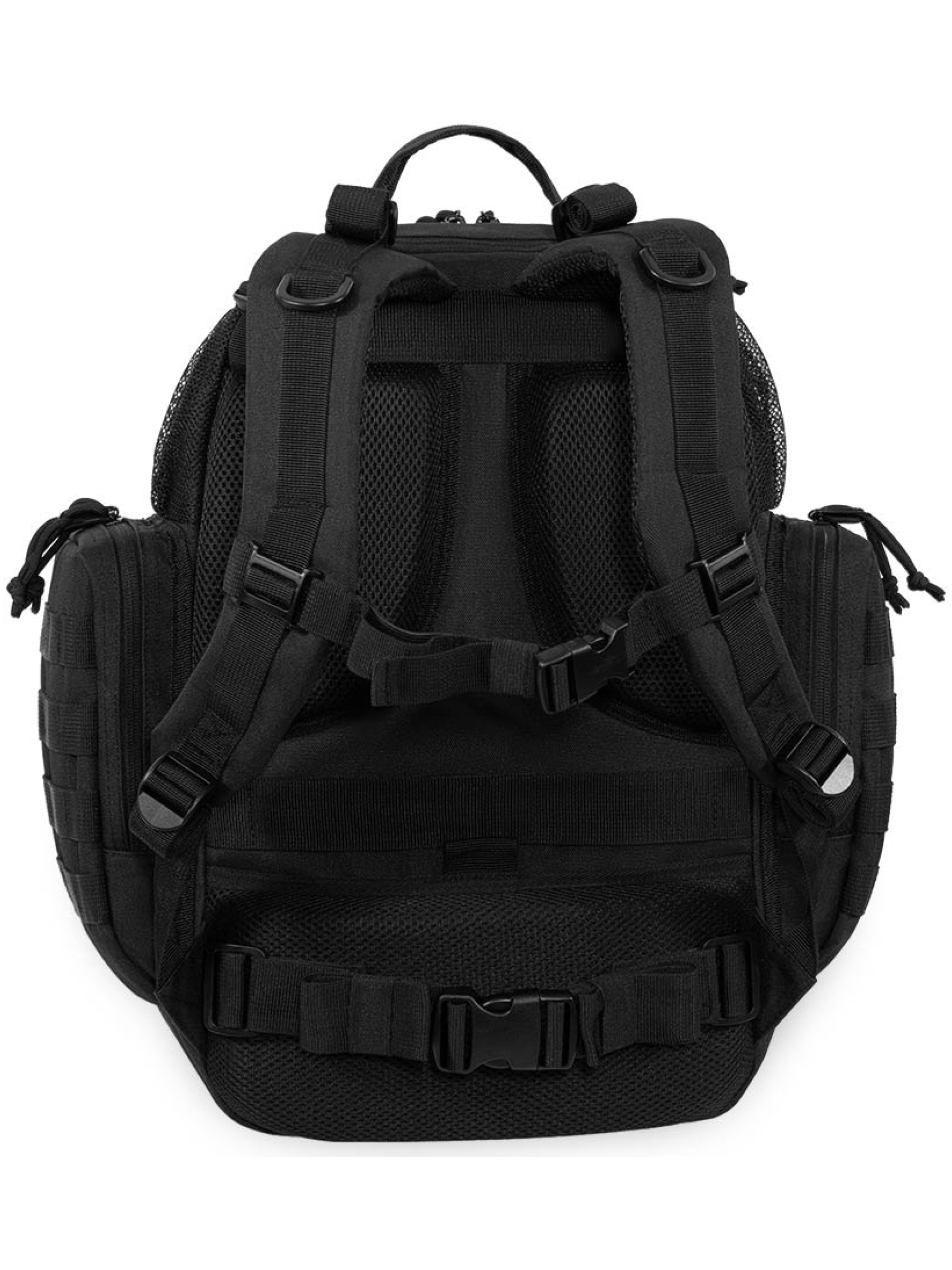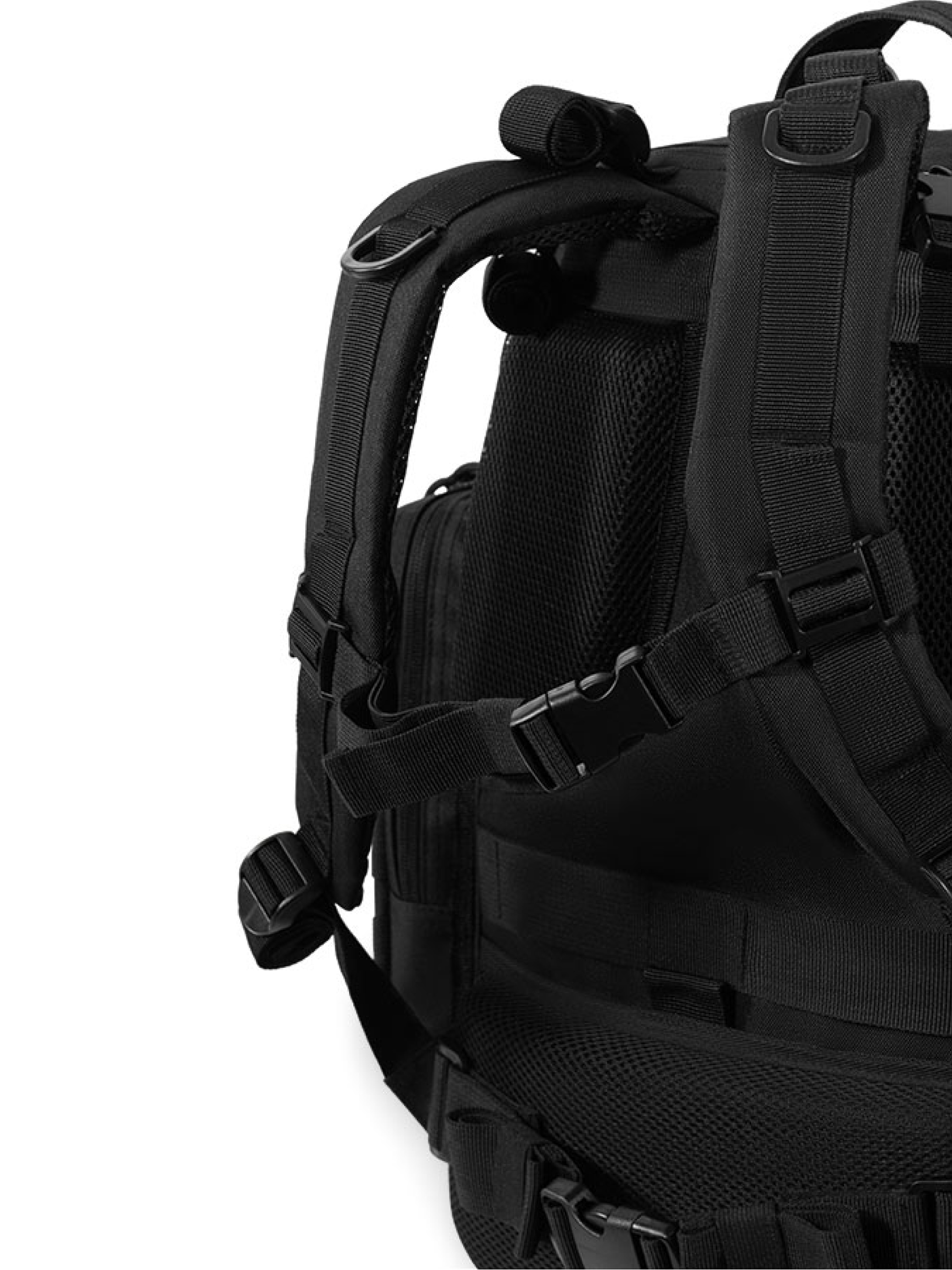 Рюкзак ShotTime Tactical объёмом 36 литров — это надёжное решение для активного отдыха и ежедневного использования. Основной материал — полиэстер 600D с ПВХ покрытием, подкладка выполнена из нейлона 210D, что придаёт изделию водостойкость. Система MOLLE на передней и боковых сторонах позволяет закрепить дополнительное снаряжение, что делает рюкзак универсальным и удобным. Молнии выполнены из нержавеющей стали и нейлона, бренда YKK, с двойными бегунками на основном, фронтальном отделении и боковых карманах. Прочные ABS-фастексы, пряжки и зажимы также чёрного цвета, как и корпус рюкзака.