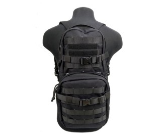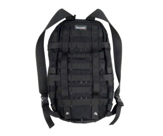 На спине рюкзака расположено (пришито) два типа креплений, дающих возможность носить его разными способами. Плечевые лямки позволяют носить его как классический рюкзак за спиной (есть возможность регулировки длины лямок). Второй способ – на спинной панели бронежилета или разгрузочной системы с системой MOLLE, к которой рюкзак крепится при помощи строп.