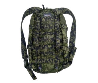 На спине рюкзака расположено (пришито) два типа креплений, дающих возможность носить его разными способами. Плечевые лямки позволяют носить его как классический рюкзак за спиной (есть возможность регулировки длины лямок). Второй способ – на спинной панели бронежилета или разгрузочной системы с системой MOLLE, к которой рюкзак крепится при помощи строп.