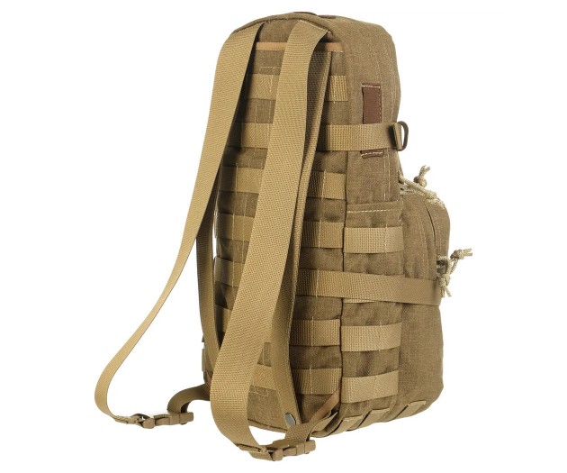На спине рюкзака расположено (пришито) два типа креплений, дающих возможность носить его разными способами. Плечевые лямки позволяют носить его как классический рюкзак за спиной (есть возможность регулировки длины лямок). Второй способ – на спинной панели бронежилета или разгрузочной системы с системой MOLLE, к которой рюкзак крепится при помощи строп.