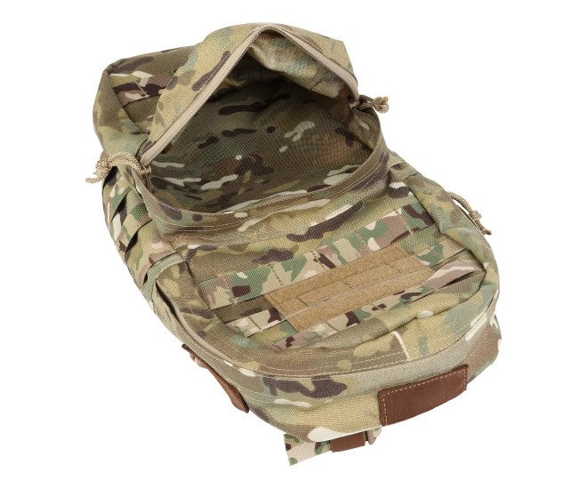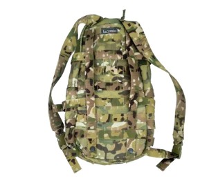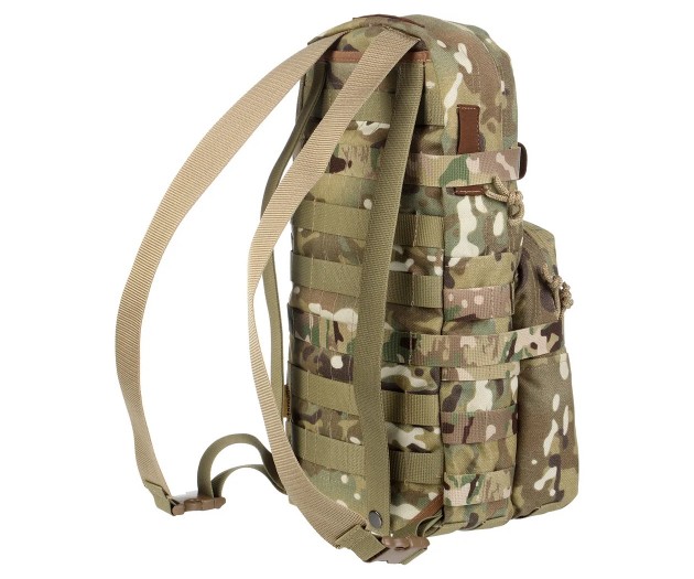 На спине рюкзака расположено (пришито) два типа креплений, дающих возможность носить его разными способами. Плечевые лямки позволяют носить его как классический рюкзак за спиной (есть возможность регулировки длины лямок). Второй способ – на спинной панели бронежилета или разгрузочной системы с системой MOLLE, к которой рюкзак крепится при помощи строп.