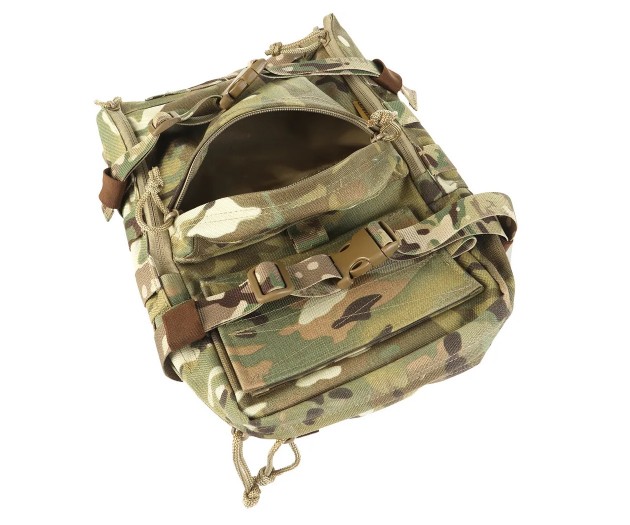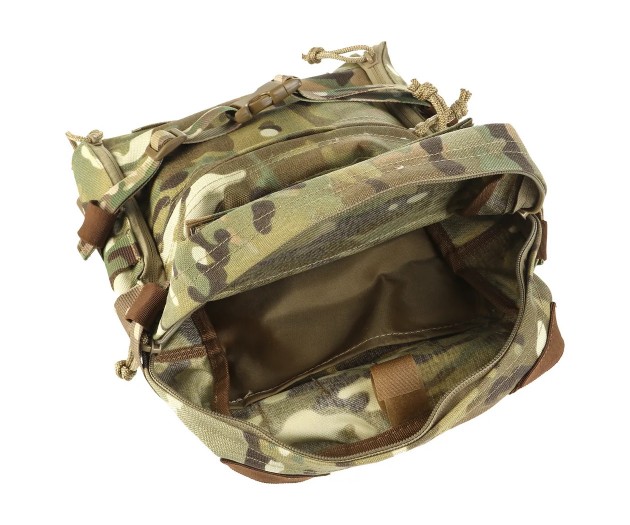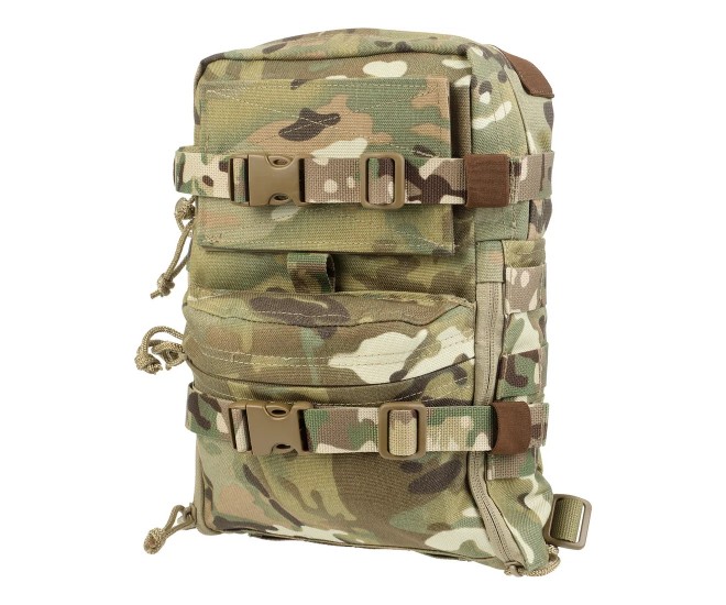 Тактический рюкзак Mini map закрепляется на спинную панель броне- или разгрузочного жилета при помощи интерфейса MOLLE. Хорошо подходит для однодневных походов. Общий объем рюкзака составляет около 8 литров, из которых объем основного отделения ~6 литров.