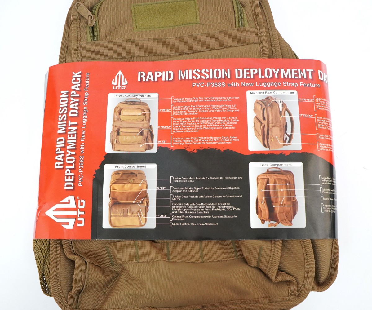 Рюкзак UTG тактический, материал - полиестр, цвет - Tan, внешние карманы, система MOLLE, 43,2х30,5х16,5 см, вес 1542 г.