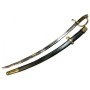 Клинок стальной (марка стали - 65 Г), кованный, искривленный, однолезвийный, с одним широким долом, украшенным геометрическим орнаментом, боевой конец двулезвийный, острие расположено по обуху клинка. Рукоять из дерева, с глубокими поперечными желобками. Вверху на рукояти фигурная, литая, украшенная, латунная втулка. Внизу на рукояти фигурная латунная втулка, украшенная растительным орнаментом.