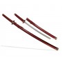 Эффектный набор японских мечей с яркими ножнами цвета бордовый мрамор и рукоятью красно-черного цвета. Состоит из одного меча Катана и одного меча Вакидзаси. Настольная подставка в комплекте.