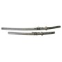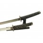 Отличный набор из двух самурайских мечей с необычными ножнами под серый мрамор. Состоит из меча Катана и меча Вакидзаси. Настольная подставка в комплекте. Отлично подходит для оформления интерьера в японском стиле и дизайна японских ресторанов.