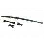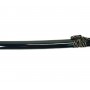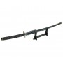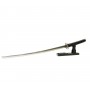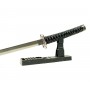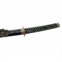 Эффектный меч Катана с рукоятью прошитой светлыми нитками и с синими ножнами. Это станет ярким подарком поклонникам японской культуры и дизайна в японском стиле. Настольная подставка в комплекте.