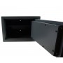 Пистолетный шкаф размером 225 х 320 х 225 мм и весом 4,5 кг. Внутри сейфа есть полка, которая разделяет шкаф на 2 отделения, при желании, ее можно снять. Толщина боковых стенок - 1,2 мм. Пистолетный шкаф закрывается на ключ.