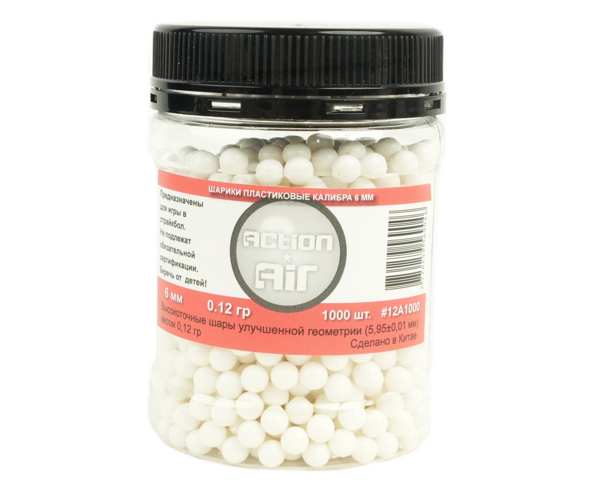 Шарики Action Air представляют собой пластиковые шарики весом 0,12 грамм, используемые для стрельбы из страйкбольных пистолетов калибра 6 мм. В упаковке 1000 шариков.