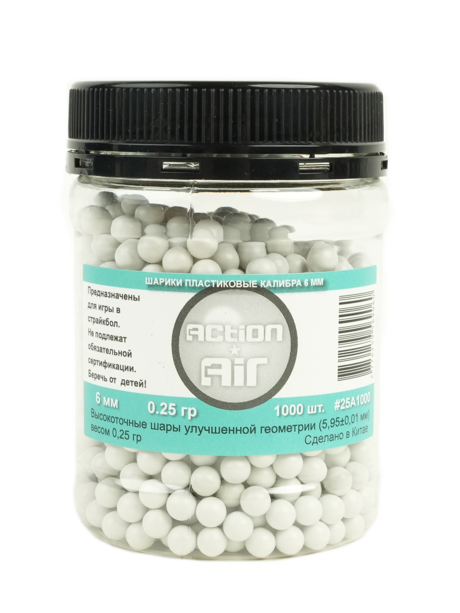 Шарики Action Air представляют собой пластиковые шарики весом 0,25 грамм, используемые для стрельбы из страйкбольных пистолетов калибра 6 мм. В упаковке 1000 шариков.