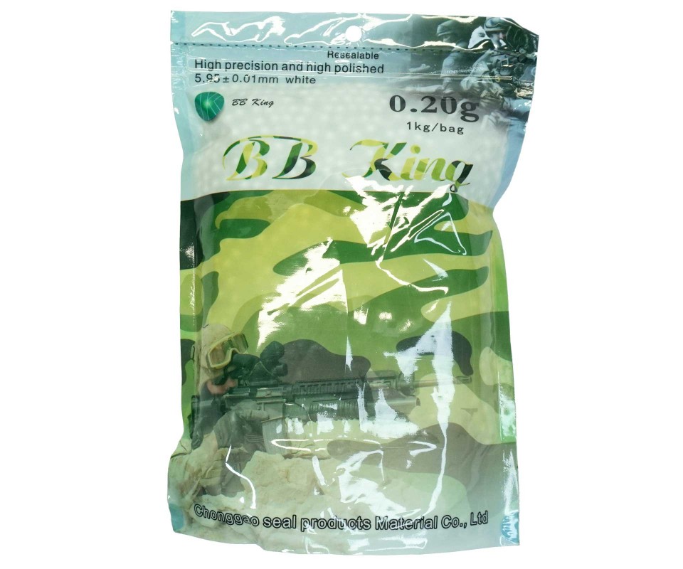 Отличные шары BB King калибра 6 мм, белого цвета, с массой 0,20 грамм отлично подходят для стрельбы из страйкбольного оружия. В пакете примерно 5000 штук.