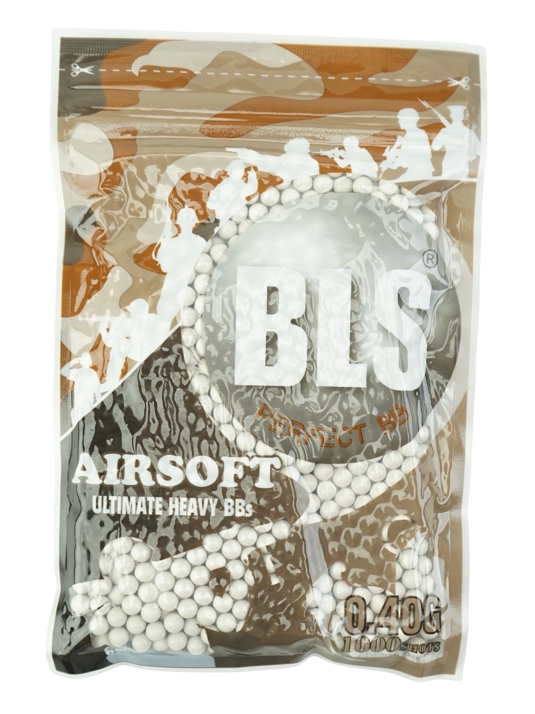 Пластиковые качественные шарики калибром 6 мм BLS Ultimate Heavy весом 0,40 граммов предназначены для стрельбы из страйкбольных пистолетов и винтовок. В упаковке примерно 1000 штук. Диаметр 5,95 мм, погрешность в диаметре этих шариков составляет всего 0,01 мм. Не биоразлагаемые.