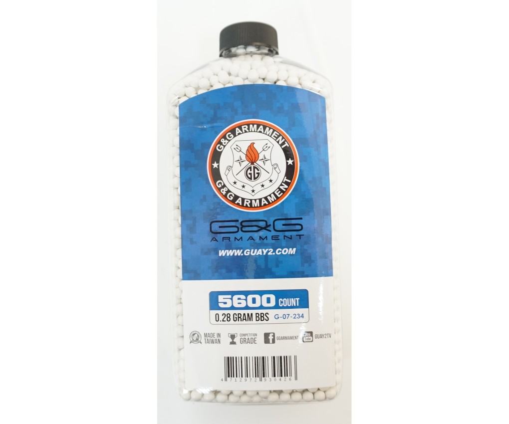 Легкие шары G&G калибра 6 мм, белого цвета, с массой 0,28 грамм отлично подходят для стрельбы из страйкбольных пистолетов и приводов со средней начальной скоростью вылета шарика (примерно 120 м/с). В бутылке примерно 5600 штук. Диаметр 5,95 мм, погрешность в диаметре этих шариков составляет всего 0,01 мм.