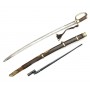 Клинок стальной, незначительной кривизны, однолезвийный, с одним широким долом. Боевой конец двулезвийный.
