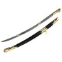 Шашка не заточена, но ее можно заточить самостоятельно, сталь высокого качества, долго держит заточку. Ножны изготовлены из дерева, латуни и натуральной кожи.