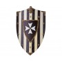 Щит Госпитальера (Wooden Shield of the Knights Hospitalier) изготовлен из прочной древесины, окрашенный в контрастные полосы черного и белого цветов, с геральдическим символом Госпитальера рыцарей (также известный как рыцари Мальты).