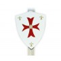 Деревянный мини-щит Крестоносцев геральдический (Crusader Shield). Оснащен кронштейном на обратной стороне для крепления на стену или на клинок меча. В середине щита латунная голова льва, по бокам лилия флер-де-лис. Ручная работа.